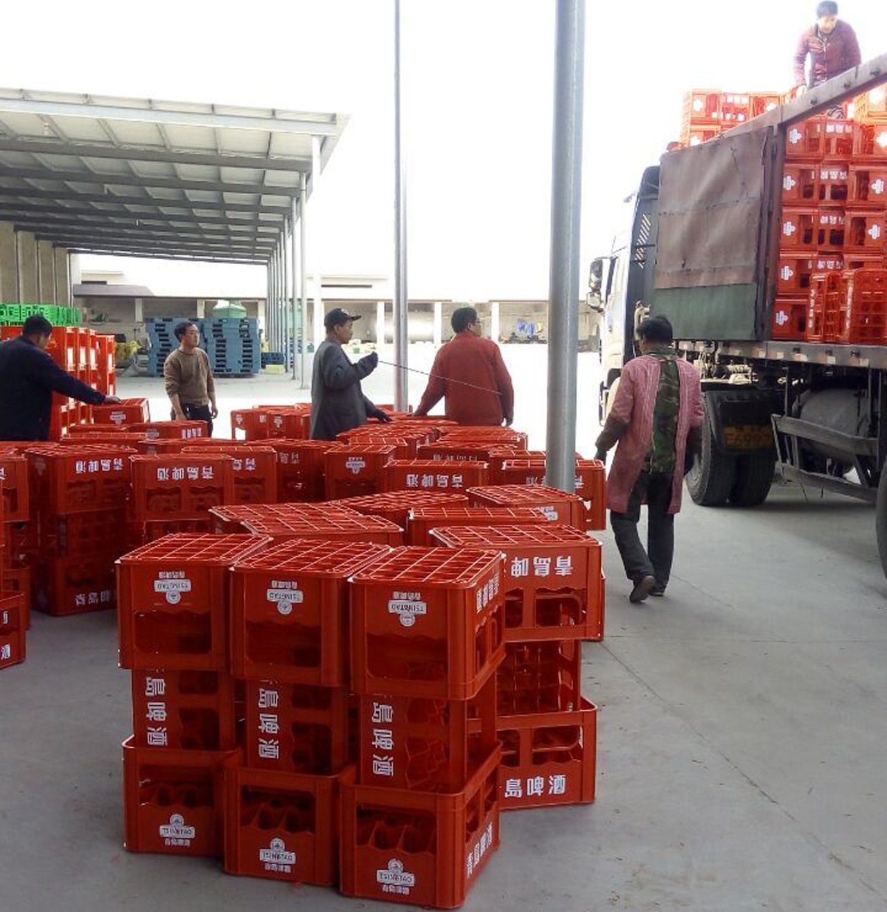 青島啤酒專用啤酒筐裝車發(fā)走